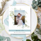 Elegant photo wedding thank you flat card with exquisite watercolor greenery showcasing your image. Mist blue stripe showcasing thank you message. Back with beautiful greenery monogram with couples initials. Ability to receive cards with your own printed message on the back or to erase our message and receive the back in black so you can hand write an individual message later on. Eucalyptus greenery in a beautiful blend of green and blue hues. Part of our "Elegant Greenery Eucalyptus Wedding and Events" collection with a variety of coordinating products available.