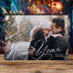 Elegant Photo Happy New Year Script Silver Foil Holiday Card