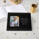 This classic frame photo memorial or funeral guest book features your loved one's photo as the focal point on a black backdrop with double gold frame accent. The editable words "In Loving Memory" appear above your loved one. You can place your loved one's name and dates on the design as well to make a custom memorial guest book.