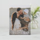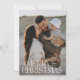 Elegant photo modern minimal natural black watercolor botanical typography Merry Christmas holiday flat card.