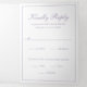 Traditional and classy all in one wedding invitation template with rsvp card and enclosure card attached, making this invitation suite convenient and budget friendly. The wedding invitation has your two initial monogram and your names in an elegant calligraphy inside of a thin border along with your favourite photo on the back. The design elements are in dusty purple / violet / lilac and may be changed to any colour you wish in the design editing tool. The RSVP postcard has your mailing address on the back and your guests simply cut off and mail back to you. NOTE: First class postage is required for the RSVP postcard. Postcard stamps will not be enough postage due to the size. This classic black and white design is perfect for a formal wedding. All-in one invitations are convenient and budget friendly.
