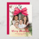 A single photo modern Christmas card with handwritten script, Festive Pin Leaves and ornament. Click the edit button to customise this design.
