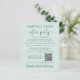 Budget-friendly light mint green elopement or small wedding announcement and wedding reception or celebration party invitation. The front features "Happily Ever After Party" in simple typography and an elegant script, and you can customise your announcement and invitation in more detail, upload a QR code linked to your wedding website for your guests to scan for more information and to RSVP online, and add your names in a signature-like script. The reverse side features your photo, your first names and wedding date.