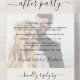 Elegant wedding reception all in one invitation featuring your wedding day photo overlayed with your customised announcement and invitation and "Happily Ever After Party" written in simple typography and a stylish script with swashes. Input your wedding website URL address to create a QR code for your guests to RSVP online and obtain additional details. A tear away RSVP postcard provides a convenient and eco-friendly and envelope-free response from your guests that prefer to RSVP by mail.