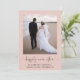 Elegant blush pink elopement or private wedding announcement and reception invitation featuring your photo, "happily ever after" in a chic script with swashes and your first names, wedding date and location. On the back, customise your wedding announcement, add a reception or party invitation, input your wedding website address to create a QR code for guests to scan to RSVP online and sign your married names in a signature-like script.