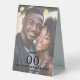 Add a personalized, elegant touch to your reception décor with this portrait-style photo table number stand template. Designed for weddings, engagements, couples showers, and anniversaries, this stylish display features a fully editable photo of the couple beneath two layers of soft, translucent overlays. These overlays ensure the black text with white drop shadow appears crisp, readable, and beautifully balanced against any photograph.