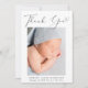 Simple and elegant baby girl or boy birth announcement featuring your newborn's photo and "Thank You" in a stylish script with a heart swash. Personalise with his or her full name, arrival date and birth stats in modern typography. On the reverse side, add an additional photo and customise your announcement and thank you message.