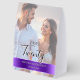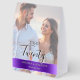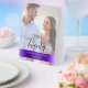 The table number, set in graceful calligraphy across the lower portion, adds a sophisticated yet understated flourish. On the beautiful purple band that spans the lower third, your names and special date appear in polished white lettering—offering a stylish contrast that feels both timeless and beautifully curated.