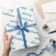 Custom Text Elegant Pine Tree Green And White Template Merry Christmas Gift Wrapping Paper.