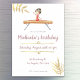 Beautiful and elegant magnetic birthday invitation with a girl on a beam. This gymnastics pink and gold* invitation is perfect for a little girl (or not so little) (*note that the gold in the invitation is printed and not actual foil will be used). Personalise the text with your own information or click on customise further for more possibilities. Illustrated and designed by Patricia Alvarez.