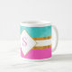 This elegant pink, green and white coffee mug with golden yellow stripes and pink monogram for chick and modern style. It's easy to customise with your monogram and make it your own. Perfect for classy gifts, birthdays, chick home or office.