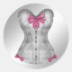 Elegant pink and grey damask corset bridal shower and bachelorette party stickers. You can add text by simply choosing the "Customise it!" button.