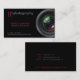 Professional Photographer Camera Lens Business Card. Pink and Grey colour theme.
