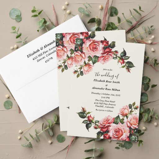 Elegant dark pretty red and pink white rose floral cottage core wedding