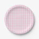 Elegant Pink and White Gingham Pattern Paper Plate