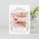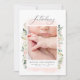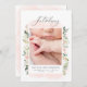 Introducing photo blush pink floral birth announcement. Beautiful watercolour floral and elegant script text. Part of a collection.