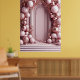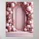 Luxurious arrangement of metallic and pastel pink balloons decorates a classical frame and ornate interior, exuding elegance and celebration. Perfect for events, backgrounds, or festive occasions.
