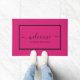 Elegant welcome Doormat with a black script on a pink background. Personalise with your family name or text.