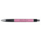 The first line of display text is an elegant black script. The bottom line of text is not a script. You can replace the text with a custom message such as your beauty salon's name and phone number. The pen is pink. The text is black.