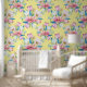 Elegant Pink, Blue and Yellow Floral Pattern Wallpaper