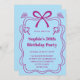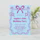 Elegant Pink & Blue Ribbon Frame Birthday Party Invitation