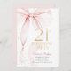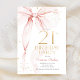 Elegant pink bow 21st birthday invitation. Feminine design in blush pink and gold. Features trendy watercolor coquette bow, and modern typography font. Perfect for an elegant style women's bday celebration. Personalize with your own details. Printed Zazzle invitations or instant download digital printable template.