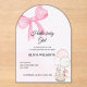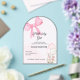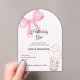 An elegant clear acrylic baby shower invitation designed for a baby girl celebration. Featuring a soft pink bow, pastel balloons, and a modern arch shape, this invitation brings a classy and timeless touch to your baby shower. Fully customizable with name, date, time, and location, it’s perfect for a chic and memorable baby girl shower.