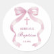 Elegant Pink Bow Baptism Classic Round Sticker