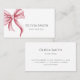 Elegant business card with a pink bow on one side. Illustrated and designed by Patricia Alvarez.