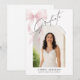 Share your graduate’s exciting milestone with this elegant, modern announcement featuring watercolor pink ribbon illustration, elegant script lettering, and a full‑photo layout that highlights the graduate. The back is left blank for a sleek, uncluttered finish or optional handwritten notes. A beautiful choice for celebrating with simplicity and class.