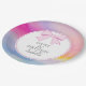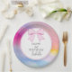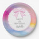 Elegant Pink Bow Rainbow Watercolor First Birthday Paper Plate