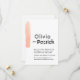 Modern simple Wedding Save the Date. Elegant delicate peach watercolor brush stroke. Card feature modern black text on a clean white background. A simple and stylish look.