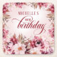 Elegant Pink Burgundy Floral 80th Birthday Square Paper Coaster