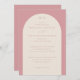 This elegant wedding invitation features a soft, pastel pink color palette that exudes warmth and sophistication. The design is centered around an arched layout with delicate typography that adds a touch of romance and refinement. The minimalist style focuses on clean lines and subtle contrast between the text and background, creating a timeless and inviting feel perfect for celebrating love and unity. Ideal for couples seeking a classic yet modern aesthetic, this invitation sets the tone for a memorable and heartfelt celebration.