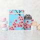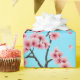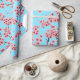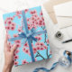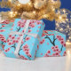 Elegant Pink Cherry Blossoms on Sky Blue Christmas Wrapping Paper