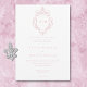 Elevate your special day with our elegant, vintage Baroque-style wedding invitation, a masterpiece of timeless elegance. Featuring a delicate French dusty pink chinoiserie crest with delicate line art ribbons and filigree on a pristine white background, this design exudes classic charm and sophistication. Its simplicity highlights its refined details, creating a design as graceful as your love story. Perfect for those who cherish tradition and elegance. Created by Simply Farmhouse Press.