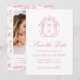 Announce your wedding with romantic charm using this pink monogram save the date card. The front showcases your personalized monogram initials framed by an intricate crest of chinoiserie and baroque motifs, offering a classic and decorative look. Elegant calligraphy introduces “Save the Date,” followed by your wedding details in traditional serif type. On the back, your vertical engagement photo is displayed within a white frame, with room below to include your wedding website and QR code. A pink and white chinoiserie floral pattern with Victorian elegance completes the design, blending softness with timeless sophistication.