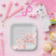 Elegant Pink Coquette Bow Girl Baby Shower Square Paper Plate