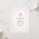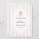 Welcome guests to your new home with this elegant pink and gold key housewarming invitation. The design features a beautiful gold skeleton key adorned with a delicate pink ribbon, set against a charming pink and white striped background with a lace border.