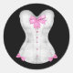 Elegant white damask corset with pink bows stickers. You can add text by simply choosing the "Customise it!" button.