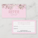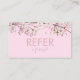 Elegant pink blossom referral card featuring chic modern typography on a blush pink background. Personalise by adding your contact information on the reverse with your special customer loyalty offer. Designed by Thisisnotme©
