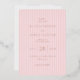 This elegant foil invitation features a soft pink background with subtle diagonal stripes, creating a modern and sophisticated look. The design uses graceful script typography for an introductory note and clean serif fonts to highlight the names and event details, ensuring clarity and readability. Its minimalist aesthetic, with ample negative space, conveys warmth and celebration, making it perfect for formal occasions like weddings. Customisable elements allow personalisation while maintaining a cohesive colour palette of light pastel pinks, enhancing its refined charm.