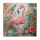 Elegant Pink Flamingo Bird and Tropical Flowers Tile