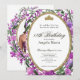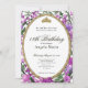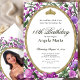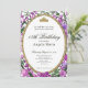 This elegant pink and purple floral 18th birthday debut invitation has roses, a gold tiara crown, and a gold oval frame with a personalizable template to create your own message. The invitation template is customizable in the listing editor and is also available as a digital download that's printable after you personalize it. The back has a customizable photo where you can add your own picture to create your own debut invitation.