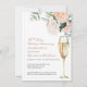 This elegant anniversary design features watercolor blush pink flowers, a white background, a champagne glass, and custom typography.