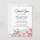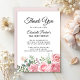 Stylish pink roses, feminine floral 90th birthday party thank you card template. Easy to personalize with your text.