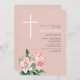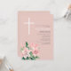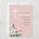 Celebrate your child's baptism with an stunning pink floral invitation. The design features beautiful watercolor pink lilies and an elegant white cross, set against a soft blush background. Use the design tools to customise the text and fonts. Also available as digital download.
