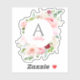 A gorgeous watercolor floral frame of peonies, alium, dahlia, eucalyptus and more surrounds a white circle that is monogrammed with the name in matching bright pink, and the letter initial in soft grey. A beautiful, elegant design for her. Copyright Personalised Home Decor & Gifts, all rights reserved.