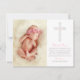Elegant Pink Floral Cross Baby Girl Baptism Photo Thank You Card