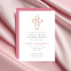 Personalised Elegant Pink Floral Cross First Communion Invitation Card.